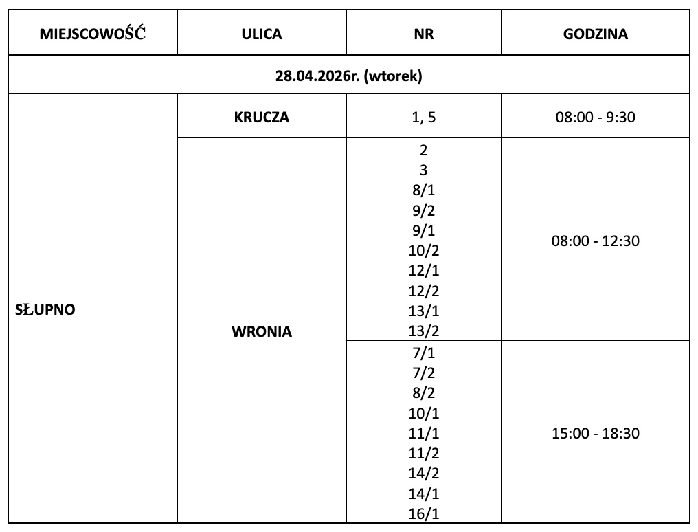 2. W miejscowościach, w których w określonym czasie wykonywana będzie wymiana wodomierzy może dojść do chwilowych zakłóceń w dostawie wody, w tym do wystąpienia krótkotrwałej przerwy w dostawie wody oraz pogorszenia jakości wody (barwy).